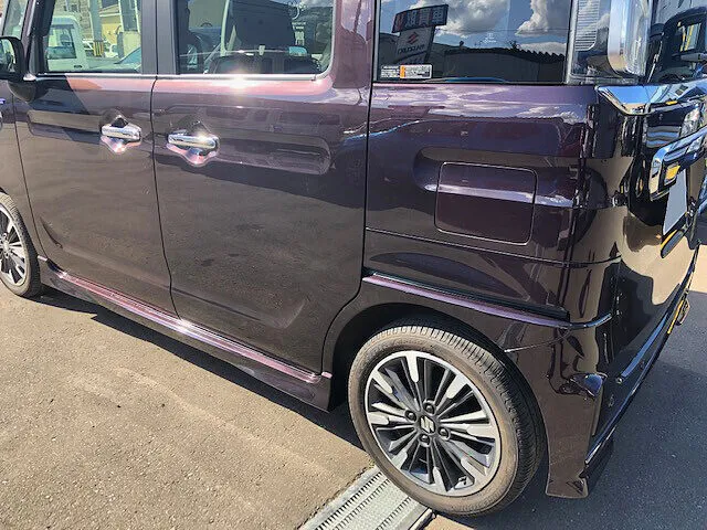 小樽市のお客様より、スズキ スペーシア カスタムのリアドア・リアフェンダー・サイドステップの擦り傷修理のご依頼をいただきました。